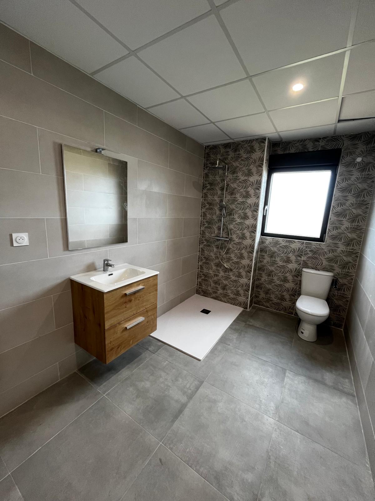 Notre équipe de plombier est intervenue sur ce chantier pour réaliser la pose complète des sanitaires dans cette villa : douche à l’italienne, WC, meuble vasque…